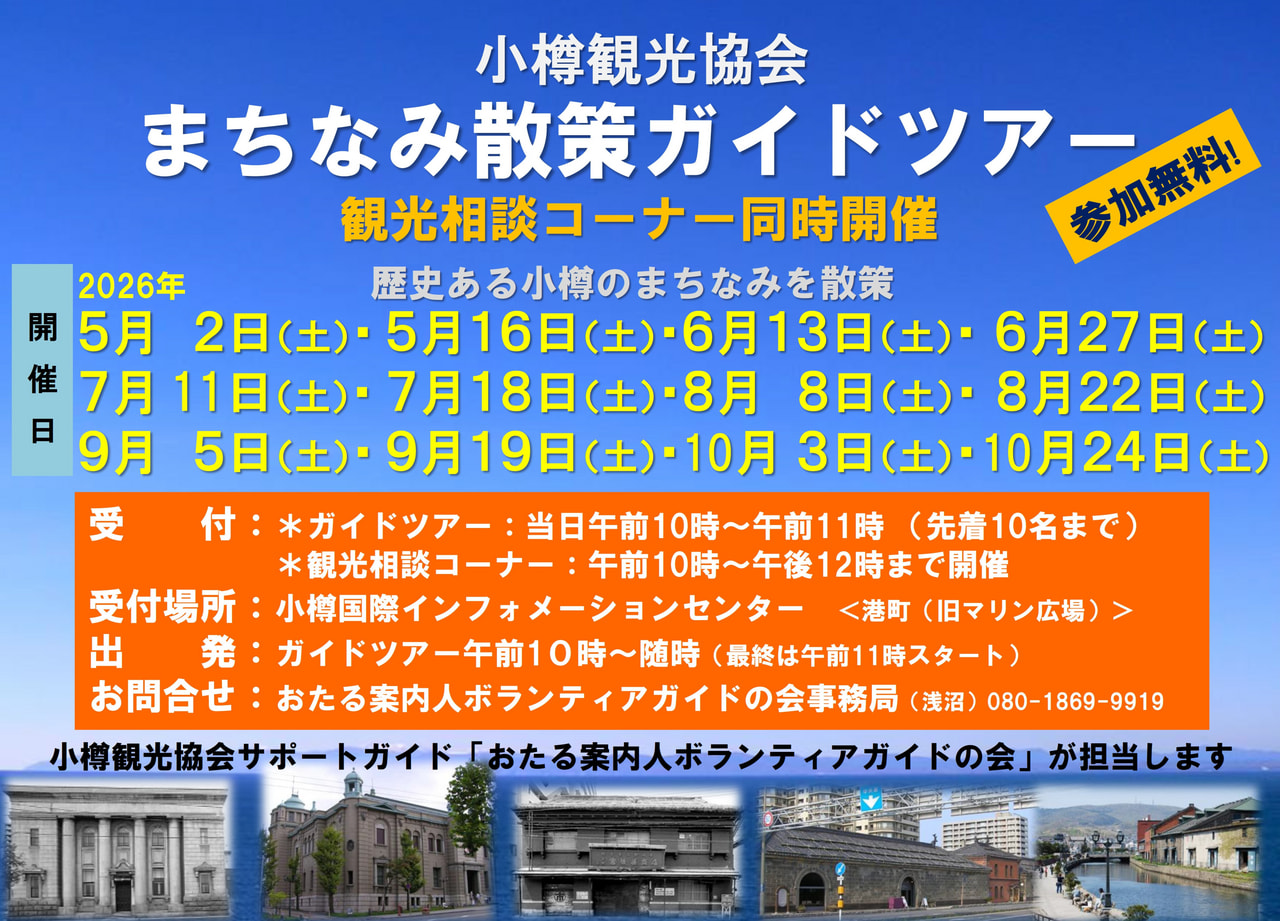 お申込み・お問い合わせは おたる案内人ボランティアガイドの会(080-1869-9919 浅沼)まで。